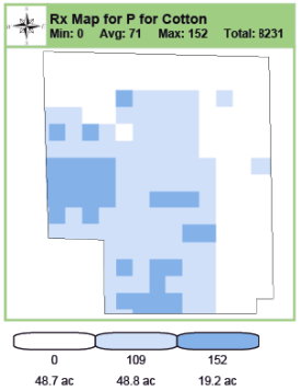 The lab data from the map above was used to create a product application map, shown below. FieldRx will create these application maps, and also the VRT controller files.